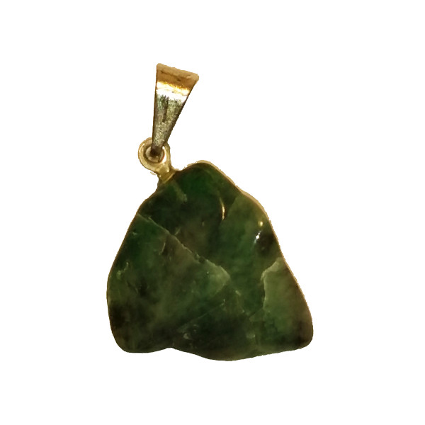 Pendente com pedra verde e suporte metálico dourado