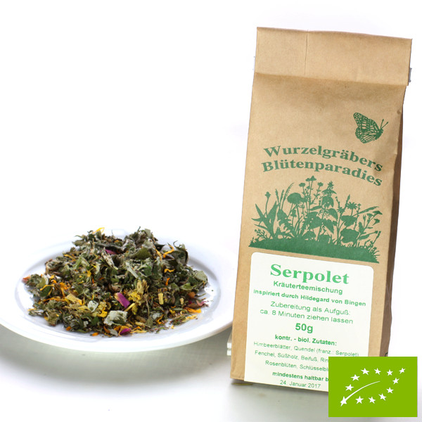Folhas de framboesa, tomilho serpão, erva-doce, alcaçuz, artemísia, calêndula, botões de rosa, primula.